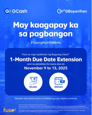 The Philippines’ leading super finance app, GCash, through official lending arm Fuse Financing Inc., is extending a 30-day grace period for GLoan and GGives borrowers impacted by Typhoon Uwan.